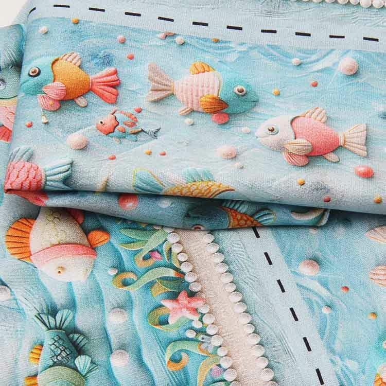 Detalhe Tecido Patchwork Digital Fabricart D957 Barrado Peixinhos 0,58x1,50mts