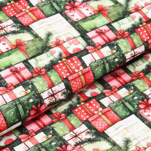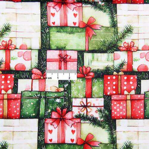Descrição Tecido Patchwork Digital Fabricart Natal DN257 Greeny Gifts 0,48x1,50mts FL