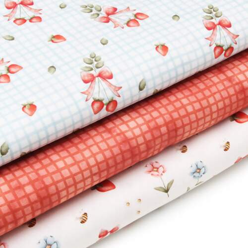 Descrição Tecido Patchwork Digital Fuxicos Coleção Frutas Vermelhas 0,48x1,46mts