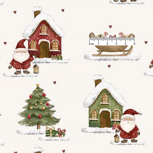 Descrição Tecido Patchwork Digital Fuxicos NAT101 Vila de Natal 0,48x1,46mts