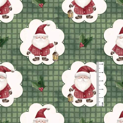 Detalhe Tecido Patchwork Digital Fuxicos NAT105 Noel Camafeu Verde 0,48x1,46mts