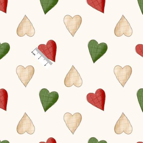 Detalhe Tecido Patchwork Digital Fuxicos NAT112 Corações Natal 0,48x1,46mts FL