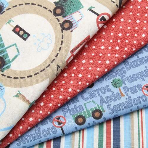 Tecido Patchwork Fuxicos Coleção Carrinhos Divertidos 0,48x1,46mts FL