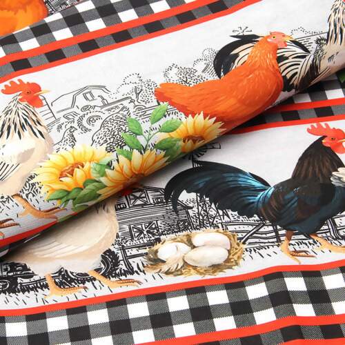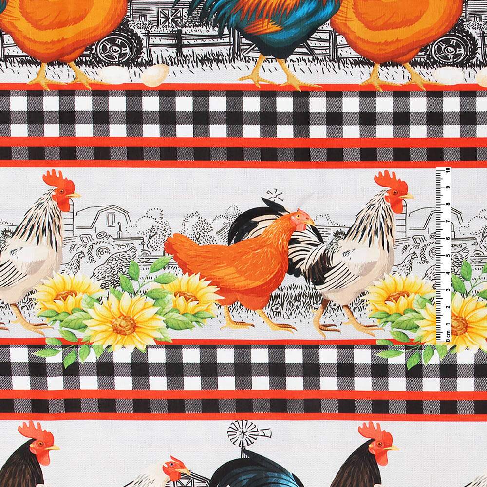 Descrição Tecido Patchwork Peripan 6208-V01 Barrado Galinhas 0,58x1,50mts