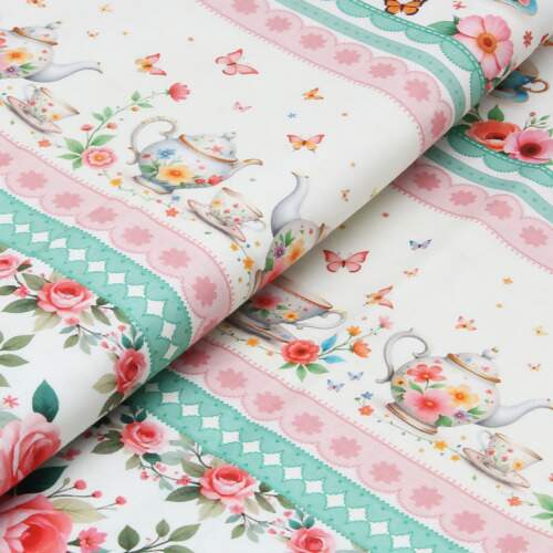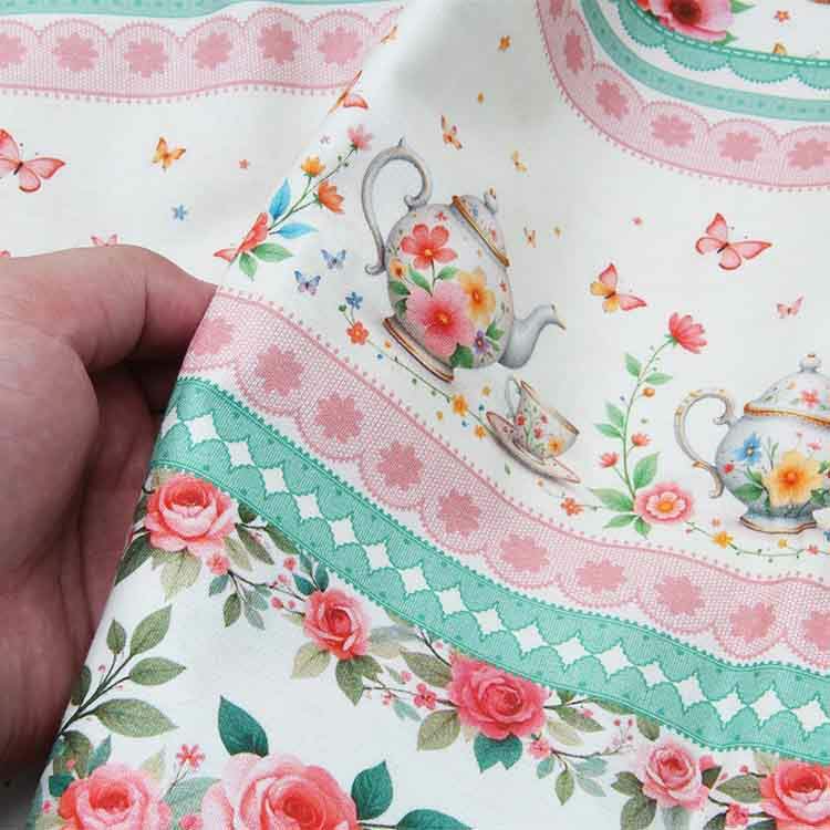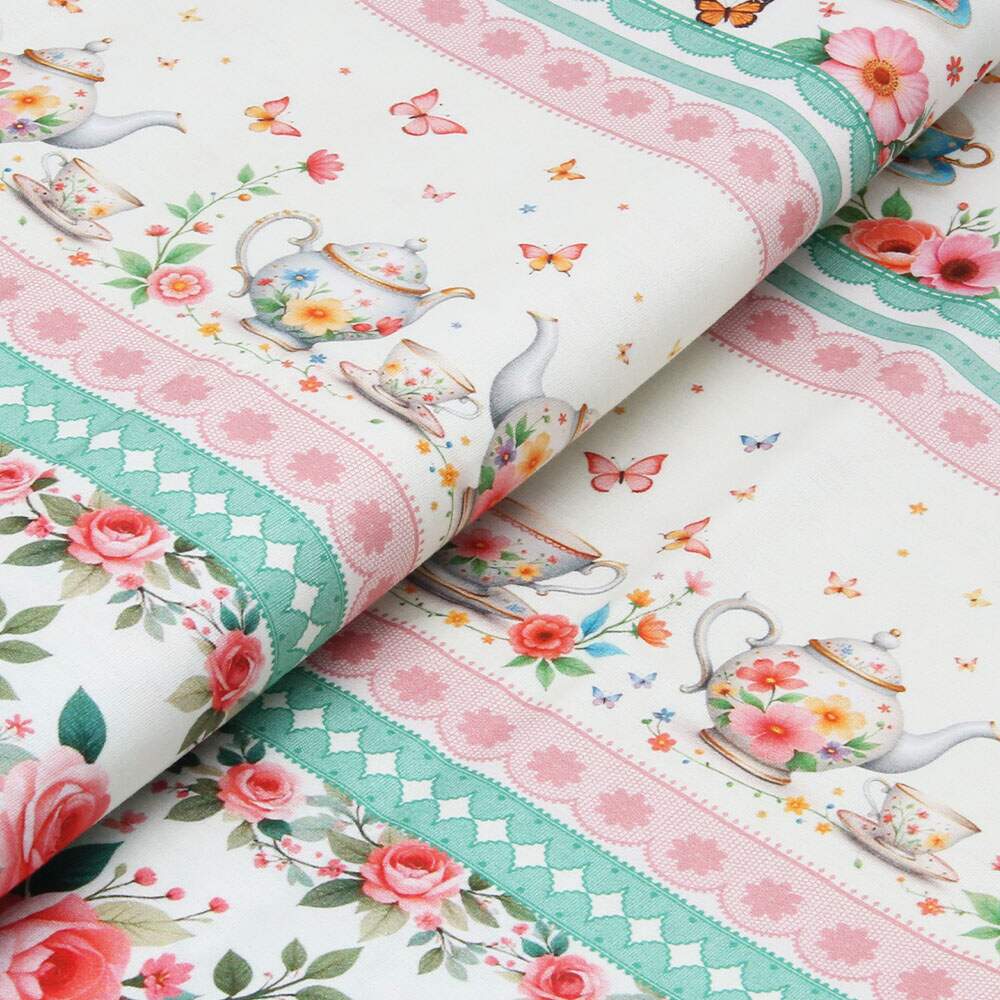Descrição Tecido Patchwork Peripan 9050-V298 Barrado Xícaras 0,58x1,50mts