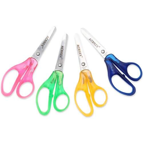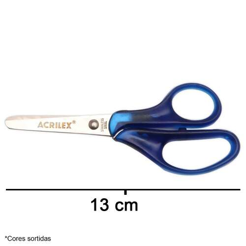 Tesoura Acrilex Escolar, desenvolvida com formato anatômico para se adequar perfeitamente ao encaixe das mãos, proporcionando excelente desempenho e segurança para uso escolar ou doméstico. Pontas arredondadas, formato seguro, confortável e leve, alta durabilidade.