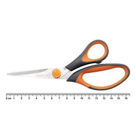 Tesoura hobby com cabo emborrachado. Indicado para cortes em geral. Uso doméstico.