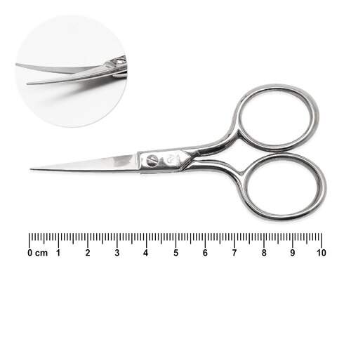 Tesoura para bordar. Possui uma curvatura na ponta.