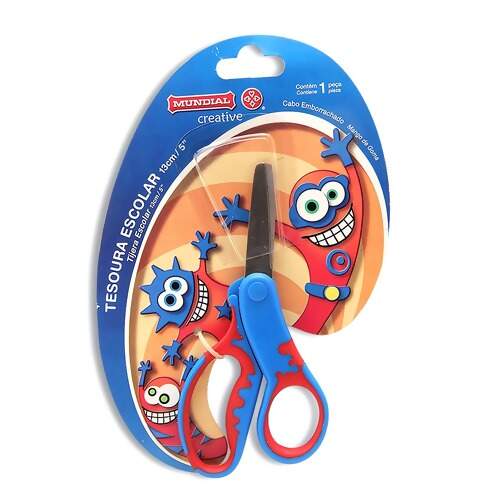 Descrição Tesoura Mundial Ref 2067/5 Escolar - Modelo Azul - 1 unidade - Tamanho 13 cm FL