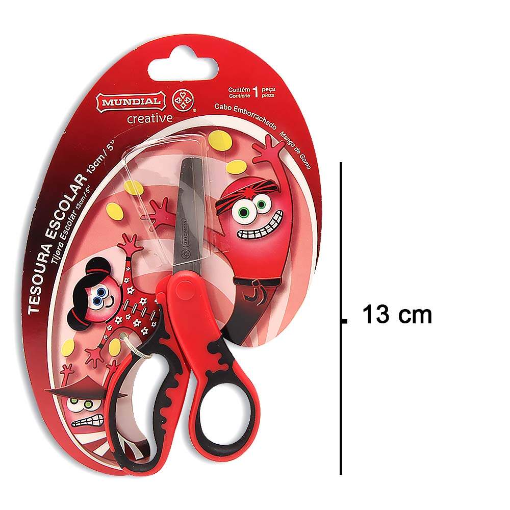 Descrição Tesoura Mundial Ref 2067/5 Escolar - Modelo Vermelho - 1 unidade - Tamanho 13 cm FL