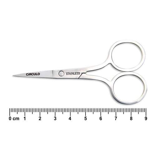 Tesoura de aço inoxidável com ponta reta. Ideal para fazer acabamentos, bordados e outros.