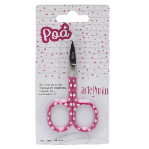A Tesoura para Bordar Ponta Reta Arte Punto Poá 9,0cm é leve, precisa e ideal para trabalhos delicados. Suas lâminas afiadas permitem cortes detalhados em linhas e tecidos, garantindo praticidade e acabamento perfeito em bordados e artesanato.