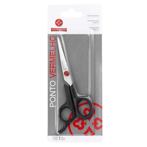 A linha Ponto Vermelho da Mundial oferece tesouras práticas, confortáveis e ideais para ajudá-lo a alcançar o cabelo dos seus sonhos! A tesoura 663-5 possui fio laser para aparar pontas e realizar cortes retos ou simétricos, com uma lâmina micro-serrilhada e outra lisa polida, descanso de dedo fixo e cabo de plástico.