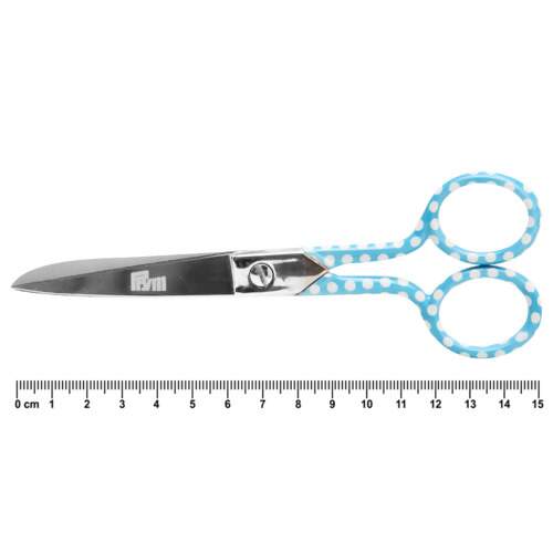 Tesoura têxtil pequena e prática com alças de aço coloridas com revestimento duplo, ideais para cortes de precisão, com manuseio equilibrado. As lâminas à prova de ferrugem forjado a quente, afiado individualmente à mão e testado. Versátil para o usuário criativo, pois corta tecidos comuns com facilidade. No entanto, sua ponta fina e afiada também os torna adequados para cortar linhas de bordar, cordões ou para desfazer costuras, bem como para bordados finos.