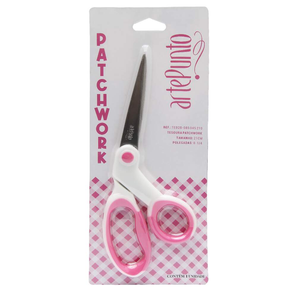 Descrição Tesoura Para Patchwork Arte Punto Branca-Rosa 21cm
