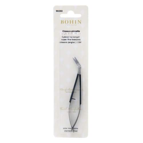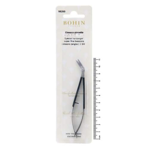 Ideal para cortes finos e para cortar linhas durante bordados hardanger. A tesoura pinça de ângulo reto BOHIN pode ser facilmente armazenada em seu kit de costura.