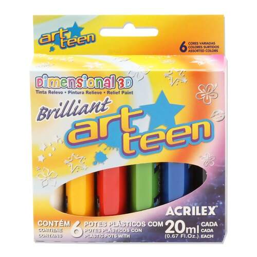 Tinta Dimensional 3D Brilliant Art Teen Acrilex Ref.12106 06 Cores