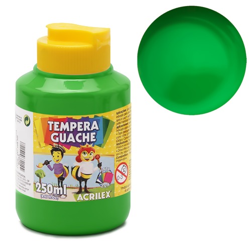 A Tempera Guache Acrilex é um importante instrumento para o desenvolvimento da criatividade, coordenação motora e percepção visual das cores. Cores miscíveis entre si.