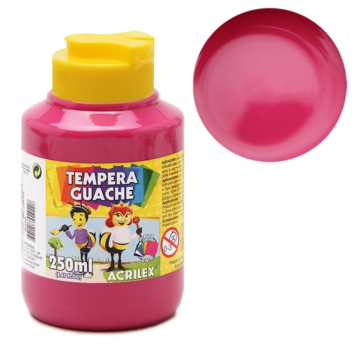 A Tempera Guache Acrilex é um importante instrumento para o desenvolvimento da criatividade, coordenação motora e percepção visual das cores. Cores miscíveis entre si.