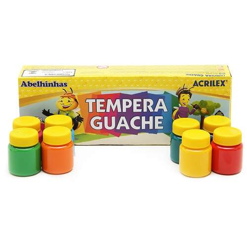 A Tempera Guache Acrilex é um importante instrumento para o desenvolvimento da criatividade, coordenação motora e percepção visual das cores. Pode ser aplicada em papel, papel cartão, cartolina, gesso, madeira e cerâmica e E.V.A.
