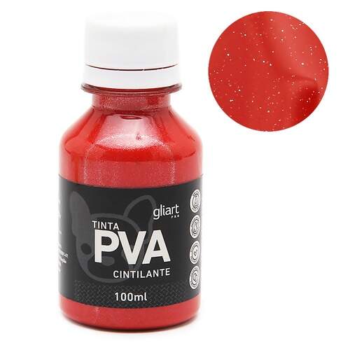 Tinta PVA Cintilante Gliart 100ml 052- Vermelho Vivo