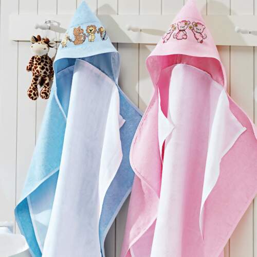 Detalhe Toalha De Banho com Capuz para Bordar Dohler Baby Love 90x70cm