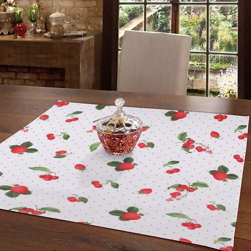 Toalha para mesa decorativa com acabamento especial Döhler Clean, que protege e permite limpar facilmente, basta passar um pano de imediato. Indicado para centro mesa quadrado de 4 lugares.