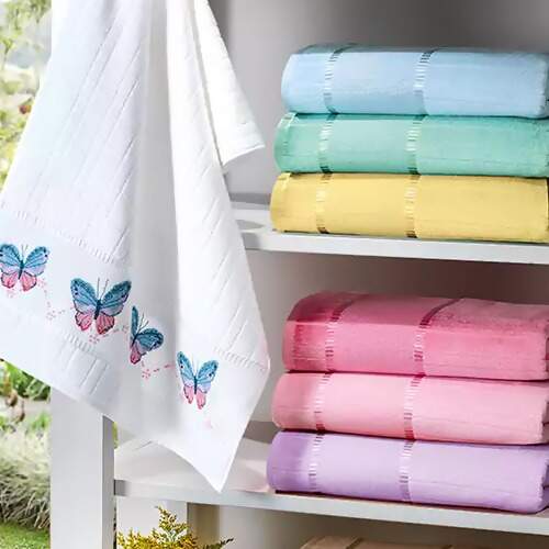 Indicada para trabalhos de ponto cruz, com barra para bordar de 60 pontos na altura da mesma, tornando-a ainda mais bonita. Com tecido aveludado e detalhe canelado no corpo da toalha, é a peça perfeita para quem busca bem-estar e qualidade.
