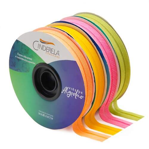 Descrição Viés Cinderela Liso Fino 12mm com 20mts