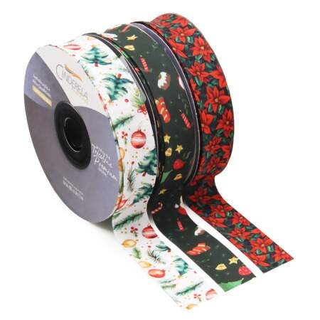 Descrição Viés de Tricoline Premium Digital Cinderela Natal 25mm com 20mts